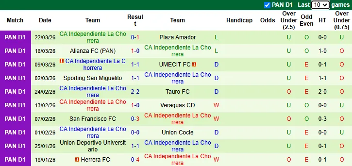 Thống kê phong độ 10 trận gần nhất Independiente La Chorrera