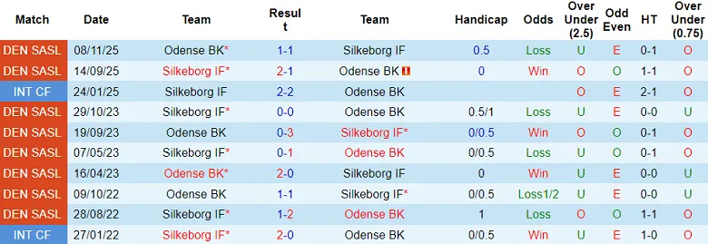 Thống kê phong độ và lịch sử đối đầu giữa Silkeborg và Odense.