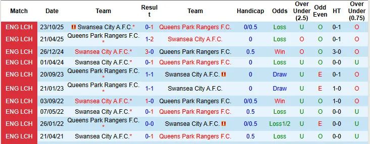 Queens Park Rangers chỉ thắng kèo 2 lần trong 7 trận gần đây đối đầu với Swansea. Đội bóng này đã thua kèo trong 2 trận đấu gần nhất. Trong khi đó, Swansea đã thắng kèo tới 3 trong số 4 trận gần đây tại giải hạng Nhất Anh.