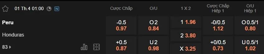 Kèo nhà cái Peru vs Honduras