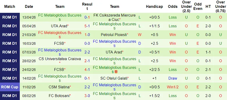 Metaloglobus đã thua cả về tỷ số lẫn kèo cược trong cả 2 lần chạm trán Botosani kể từ khi giải VĐQG Romania mùa này khởi tranh. Họ cũng thua kèo và tỷ số trong 4/6 trận sân khách gần đây tại giải VĐQG Romania. Tất cả những thất bại này đều diễn ra khi Metaloglobus được chấp từ 1,25 trái trở lên. Rõ ràng, Metaloglobus đang không phải là một lựa chọn đáng tin cậy.