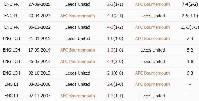 Thống kê phong độ, lịch sử đối đầu của Bournemouth vs Leeds