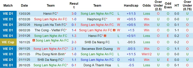 Thống kê phong độ và lịch sử đối đầu giữa SLNA và Thể Công Viettel