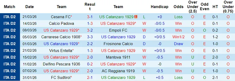 Thống kê về phong độ và lịch sử đối đầu giữa Catanzaro và Monza