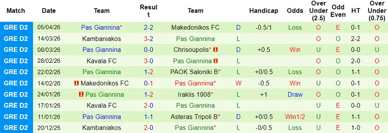 – Kết quả 10 trận gần nhất của Pas Giannina