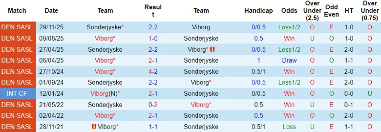 Trong 5 lần Sonderjyske tiếp đón Viborg ở giải VĐQG Đan Mạch kể từ tháng 8/2021, đã có 4 bàn thắng xuất hiện. Kịch bản quen thuộc này dự kiến sẽ tiếp diễn trong lượt trận thứ 4 của giai đoạn Championship round mùa 2025/26.
