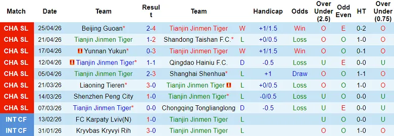 Tianjin đã thắng cả 2 lần tiếp đón Wuhan Three Towns tại giải VĐQG Trung Quốc kể từ tháng 8/2024. Khả năng rất cao là Tianjin sẽ lại giành trọn 3 điểm để chính thức có điểm số đầu tiên tại Chinese Super League 2026.