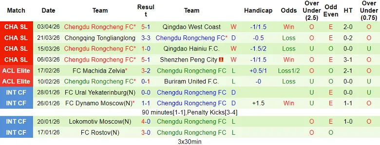 – Kết quả 10 trận gần nhất của Chengdu Rongcheng.