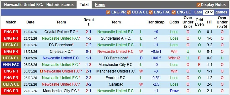Thống kê phong độ của Newcastle trong 10 trận đấu gần nhất