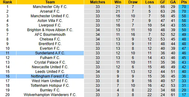 Vào rạng sáng ngày 25/4, sân The Light sẽ chứng kiến cuộc chiến giữa Sunderland và Nottingham Forest trong khuôn khổ vòng 34 của Premier League 2025/26. Khi giải đấu chỉ còn 5 vòng nữa là kết thúc, cả hai đội đều đang bước vào giai đoạn quyết định với những mục tiêu riêng.