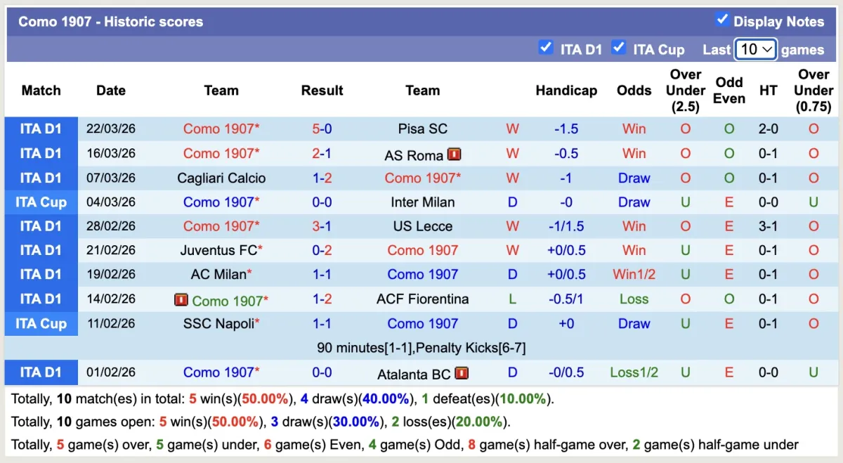Cần lưu ý rằng trong chuỗi trận này, Como đã đánh bại cả Juventus và AS Roma. Huấn luyện viên trẻ tuổi Cesc Fabregas đang xây dựng một đội bóng đoàn kết và mạnh mẽ, hiện Como đã leo lên vị trí thứ 4 trên bảng xếp hạng.