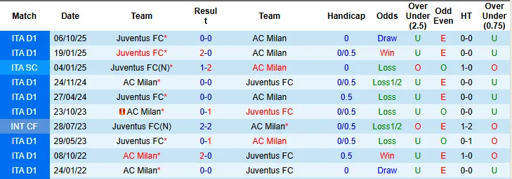 AC Milan chỉ thắng kèo 1 lần trong 4 cuộc đối đầu gần đây với Juventus ở mọi giải đấu. AC Milan cũng vừa trải qua chuỗi 5 trận không thắng kèo. Ngược lại, Juventus đã bất bại kèo trong 7 trên 8 trận gần đây.