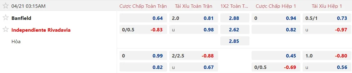 Phân tích tỷ lệ soi kèo Banfield vs Rivadavia