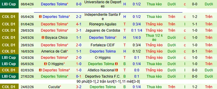 + Tolima đã thua 2 trận gần đây theo kèo châu Á.