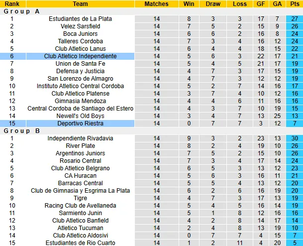 Ngược lại với chủ nhà, Independiente vẫn giữ được vị thế ổn định ở nhóm giữa bảng với 21 điểm (đứng thứ 6). Điểm nổi bật nhất của Independiente chính là phong độ ấn tượng của tiền đạo Gabriel Avalos – người đang dẫn đầu danh sách ghi bàn với 9 pha lập công.