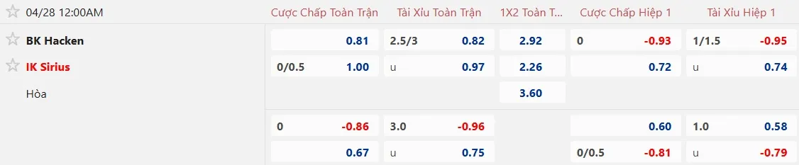 Trận đấu được dự báo sẽ có nhiều pha tấn công, khiến cho kèo trên 2.5 bàn thắng và cả hai đội ghi bàn trở thành một lựa chọn hấp dẫn. Các kết quả gần đây của Hacken bao gồm những trận hòa 3-3 và 2-2, trong khi Sirius đã có những chiến thắng với tỷ số cao như 4-1 và 3-2, cho thấy rõ ràng đây sẽ là một trận đấu cởi mở với nhiều cơ hội ghi bàn ở cả hai phía, mặc dù lịch sử lại ghi nhận 4 trận gần nhất giữa hai đội về xỉu.