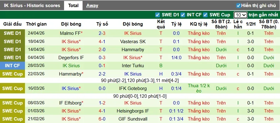 Các cầu thủ Sirius đang có chuỗi 4 trận thắng liên tiếp theo cả chuyên môn và kèo châu Á, trong đó có 2 trận cũng ghi nhận mức kèo 0:0 giống như cuộc chạm trán đêm nay giữa hai đội. Nếu nhìn xa hơn, 3 trận gần nhất của Sirius đều có kèo 0:0 và phần thắng đều nghiêng về các cầu thủ khách, khả năng kịch bản này sẽ tiếp tục tái diễn.