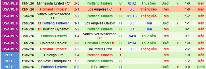+ Portland Timbers thắng 3, thua 6 và hòa 1 trong 10 trận gần nhất ở MLS.