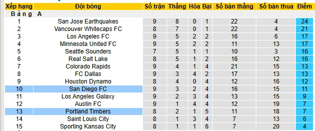 + San Diego thắng 5, thua 4 và hòa 1 trong 10 trận sân nhà vừa qua ở MLS.