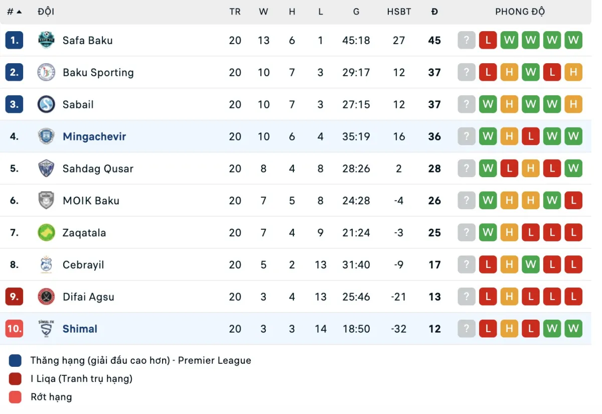 Ở phía bên kia, Energetik Mingachevir đã vượt qua giai đoạn khó khăn khi vừa giành chiến thắng ấn tượng với tỷ số 5-2 sau 2 trận hòa và thua. Hiện tại, đội khách đang đứng thứ 4 và chỉ kém nhóm thăng hạng đúng 1 điểm.