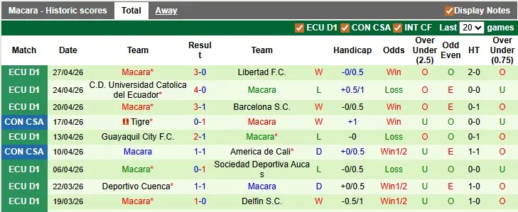 Thống kê phong độ 10 trận đấu gần nhất của Macara