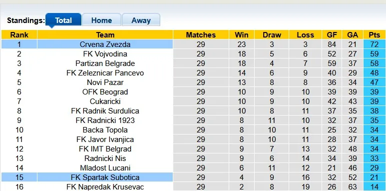 Khi mùa giải đi đến hồi kết, Crvena Zvezda càng thể hiện phong độ ổn định và quyết tâm cao. Họ đang kéo dài chuỗi trận thắng của mình tại giải lên con số 13, điều này sẽ đặt ra thách thức lớn cho Spartak Subotica, đội đang đứng áp chót với 21 điểm, thua 8 điểm so với đội xếp trên.