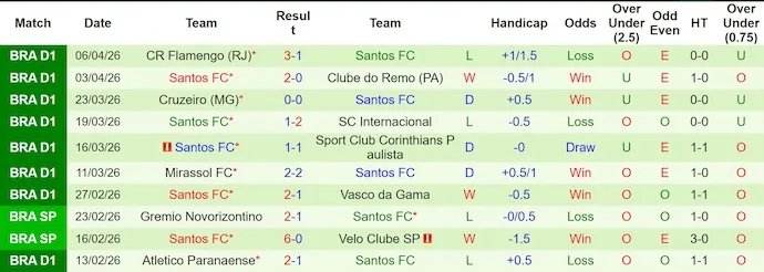 Santos lại đang trải qua giai đoạn thiếu ổn định. Trong 10 trận gần nhất, họ chỉ giành được 3 chiến thắng, trong khi thất bại diễn ra khá thường xuyên. Vấn đề lớn nhất nằm ở các chuyến làm khách, khi 6 trận gần đây không có chiến thắng nào và hàng thủ nhiều lần bị kéo giãn trước áp lực từ đối phương. Khi trận đấu căng thẳng, Santos thường để lộ những khoảng trống nguy hiểm phía sau.
