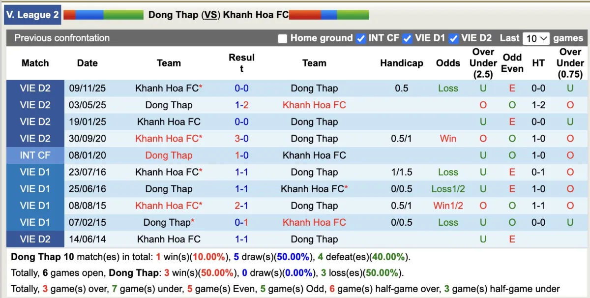 Thống kê phong độ, lịch sử đối đầu của Đồng Tháp với Khánh Hòa