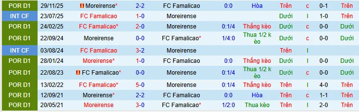 Lịch sử đối đầu Famalicao vs Moreirense.