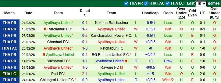 Thống kê phong độ 10 trận gần nhất của Ayutthaya United