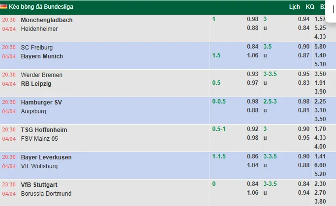 Nhà cái đã đưa ra mức kèo Leverkusen chấp -1 1/4 theo handicap. Mặc dù Leverkusen đang có chuỗi hòa dài, nhưng đối thủ của họ là một Wolfsburg đang kiệt quệ và thiếu hụt nhiều trụ cột do chấn thương và thẻ phạt. Tại BayArena, Leverkusen vẫn có tỷ lệ thắng kèo cao với 5/7 trận gần đây mang lại niềm vui cho giới đầu tư.
