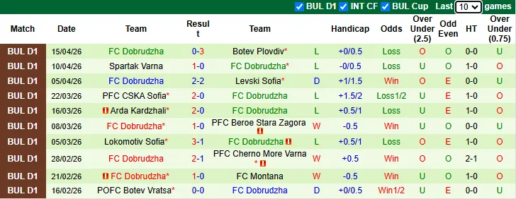 Thống kê phong độ 10 trận gần nhất của Dobrudzha