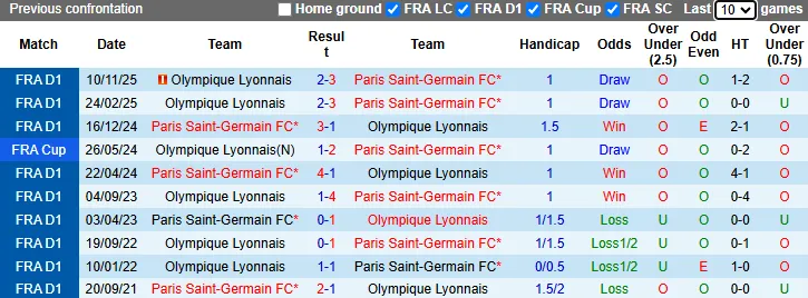 Thống kê phong độ, lịch sử đối đầu PSG vs Lyon