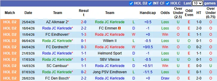 Thống kê phong độ 10 trận gần nhất của Roda JC