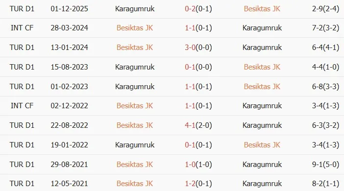 Lịch sử đối đầu Besiktas vs Fatih Karagumruk