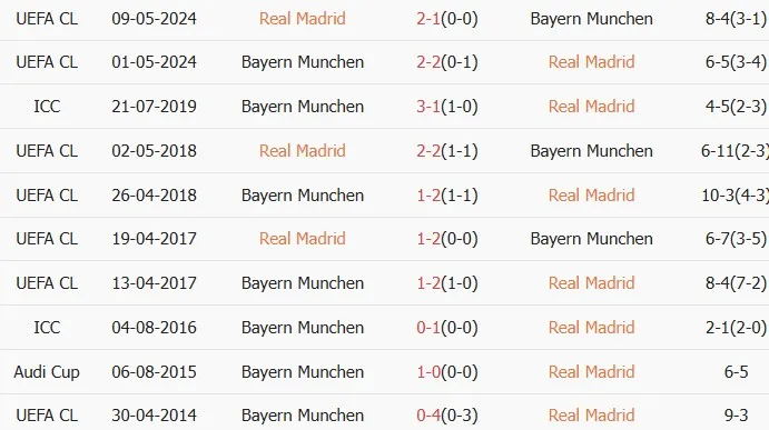 Thống kê phong độ, lịch sử đối đầu của Real Madrid vs Bayern Munich