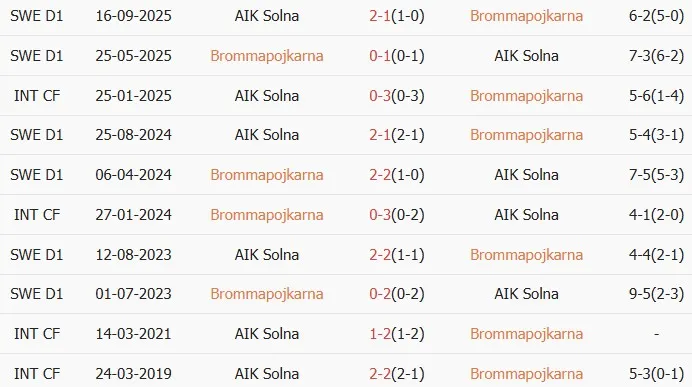 Thống kê phong độ, lịch sử đối đầu của Brommapojkarna vs AIK Solna