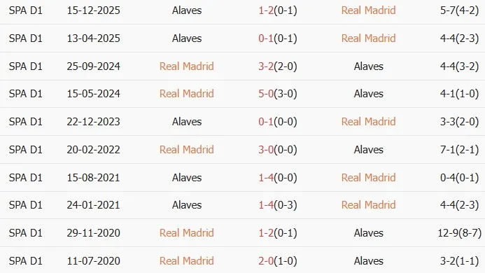 Lịch sử đối đầu Real Madrid vs Alaves