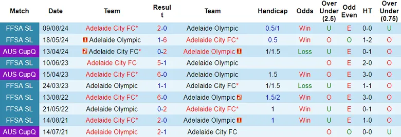 Adelaide Olympic thua theo Handicap lần gần nhất được đội khách chấp 1,25 trái thuộc khuôn khổ Australia Cup. Adelaide Olympic cũng thua kèo lẫn tỷ số lần gần nhất tiếp đón Adelaide City. Adelaide Olympic rõ ràng khó trở thành phương án mang tới nhiều niềm tin.