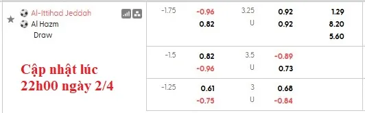 Al Ittihad thực tế chỉ thắng kèo có 6 trận từ đầu mùa, thấp hơn tất cả các đội còn lại tại Pro League. Trong khi Al-Hazem thắng kèo đến 15 trận, chỉ kém 1 đội (Al-Ettifaq –  16 trận). Dù mức chấp lên tới 1 3/4, nhưng Al Ittihad vẫn không đáng tin.