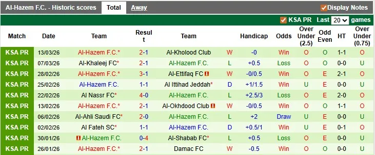 Thống kê phong độ 10 trận đấu gần nhất của Al-Hazem