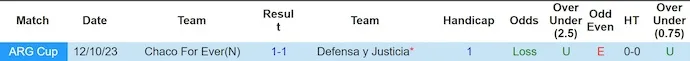 Hai đội từng gặp nhau 1 lần tại Copa Argentina và trận đấu kết thúc với tỷ số 1-1 sau 90 phút trước khi Defensa y Justicia thắng trên loạt penalty. Kết quả đó cho thấy Chaco For Ever từng gây ra khó khăn nhất định, nhưng bối cảnh phong độ hiện tại đang nghiêng đáng kể về phía đội chủ nhà.