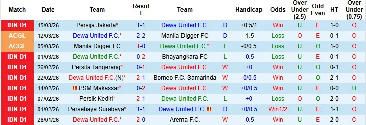 Thống kê phong độ 10 trận đấu gần nhất của Dewa United