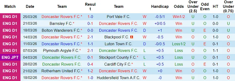 – Thống kê kết quả 10 trận gần nhất của Doncaster