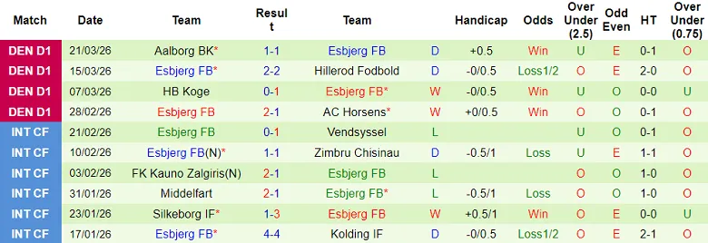 – Thống kê kết quả 10 trận gần nhất của Esbjerg