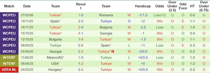 Thổ Nhĩ Kỳ cũng đang sở hữu bảng thành tích không hề kém cạnh với 7 chiến thắng trong 10 lần ra sân gần nhất. Tuy nhiên, 2 thất bại và 1 trận hòa trong chuỗi trận này cho thấy đoàn quân của Vincenzo Montella vẫn có những khoảng lặng về mặt phong độ.