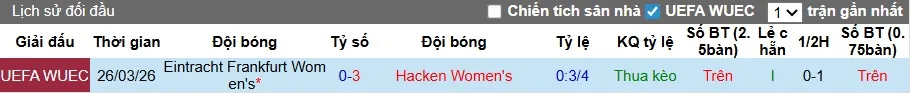Thống kê phong độ, lịch sử đối đầu của Nữ Hacken vs Nữ Frankfurt