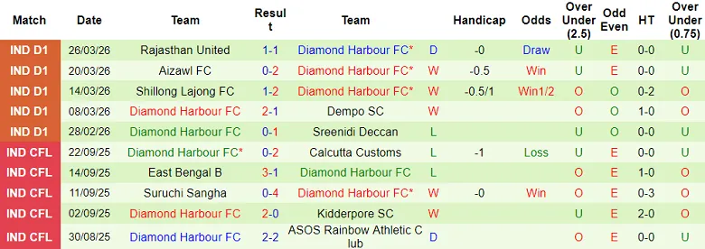 – Thống kê kết quả 10 trận gần nhất của Diamond Harbour
