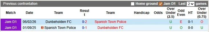 Cả 2 lần chạm trán trước đây giữa Spanish Town Police và Dunbeholden đều chỉ có không quá 2 bàn mỗi trận. Khả năng tưng bừng bàn thắng trong cuộc đối đầu hôm nay giữa hai đội cũng không cao.