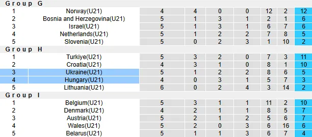 Phía đối diện, U21 Ukraine đang xếp thứ 3, ngay trên đối thủ với 5 điểm nhưng đã đá 5 trận. Đội khách vừa trải qua giai đoạn khó khăn với chuỗi 3 trận thua liên tiếp trước khi có dấu hiệu hồi phục ở trận hoà 1-1 với U21 Lithuania.